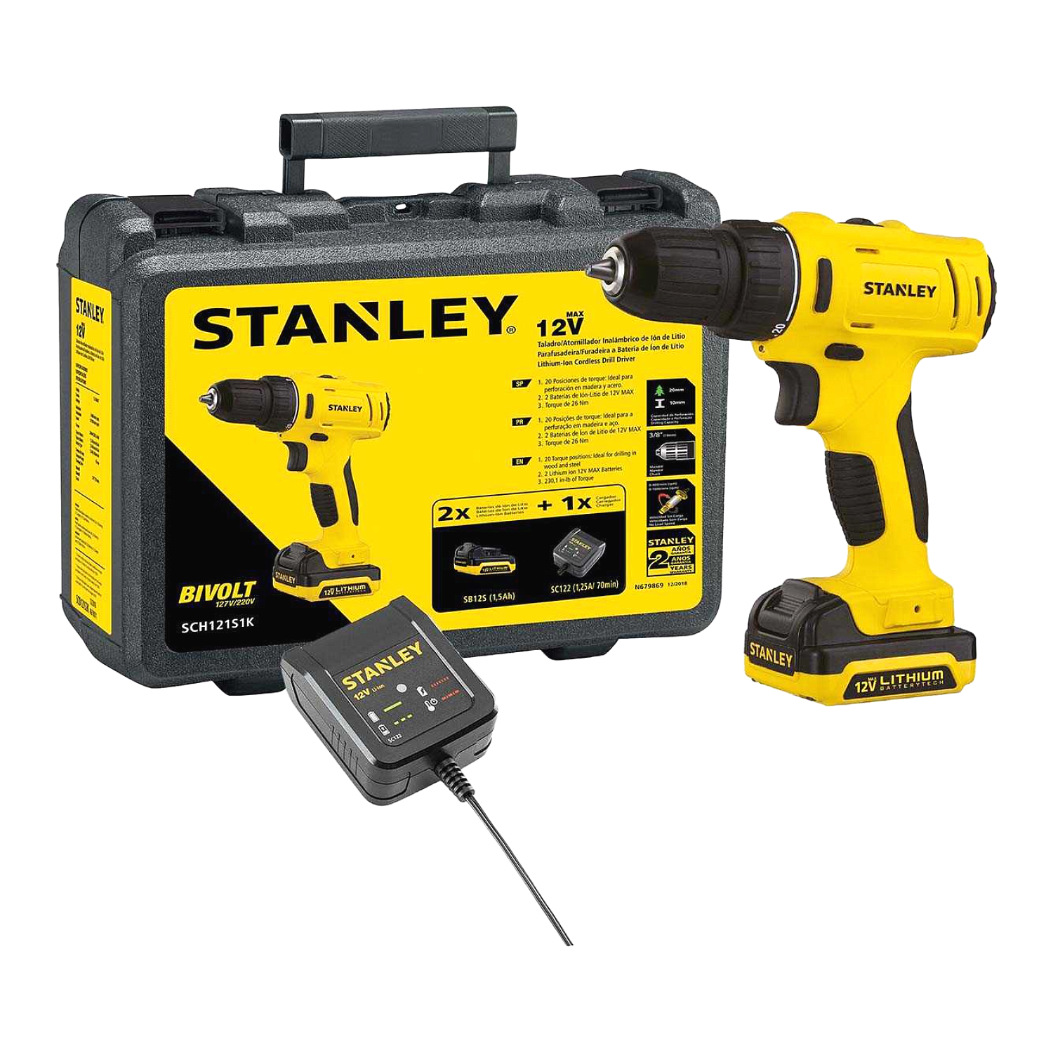 Parafusadeira / Furadeira Íon Lítio 12v C/ 2 Bateria + Maleta + Carregador Bivol. Linha Profissional.