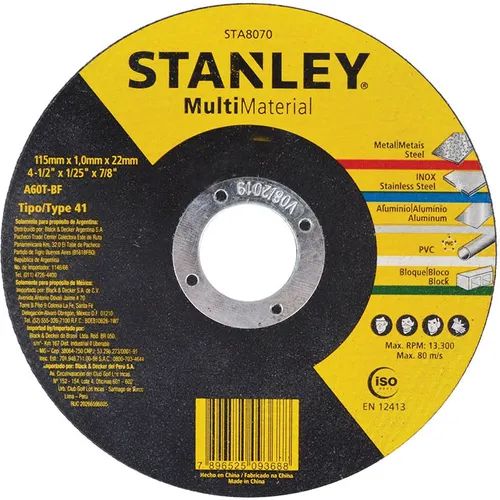 Disco de Corte Multi Material 4.1/2" x 1 x 22mm Stanely