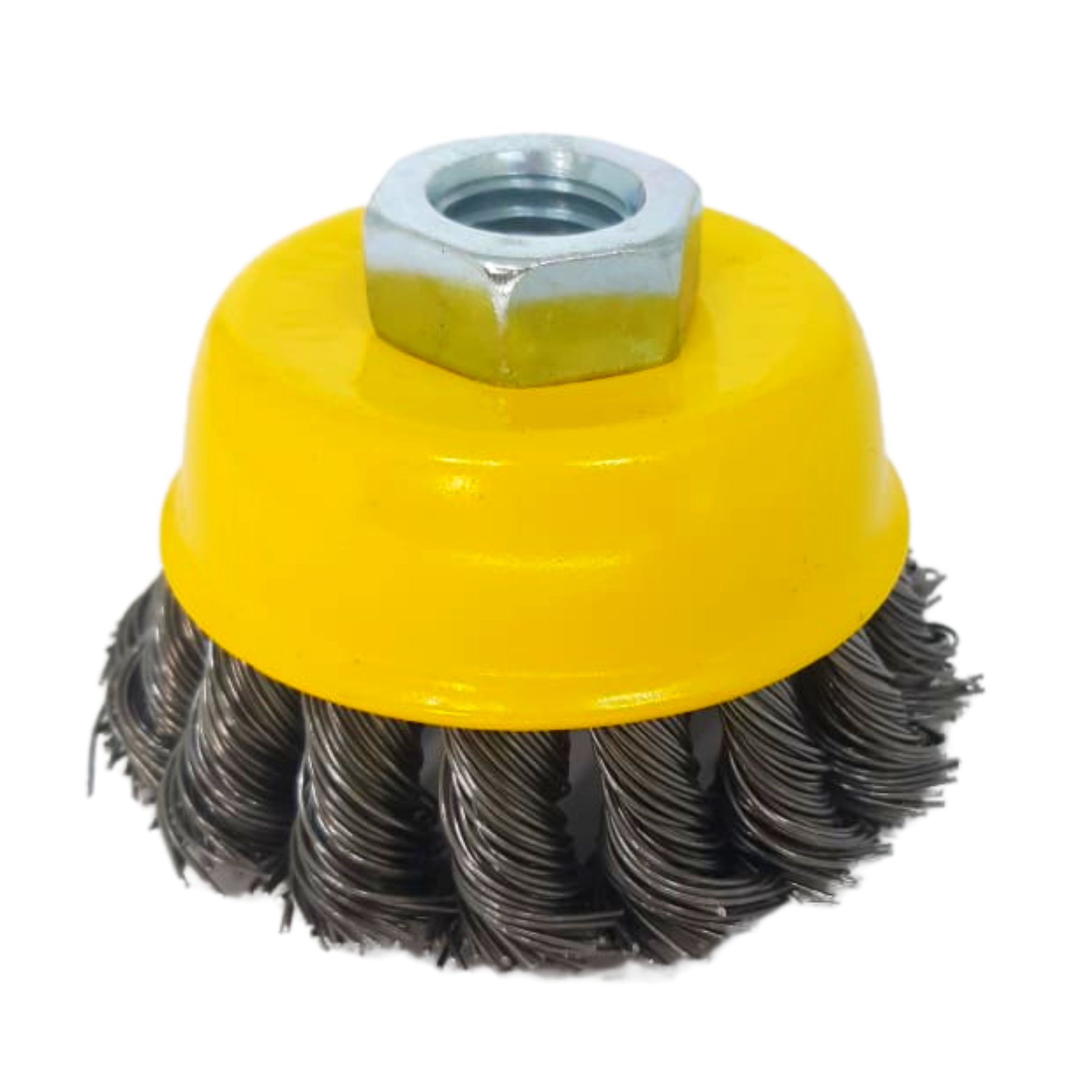 Escova de Aço Trançado Tipo Copo de Eixo M14 2,5" (64 mm) da Fertak para esmerilhadeira.